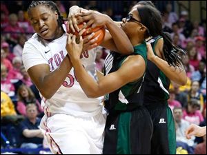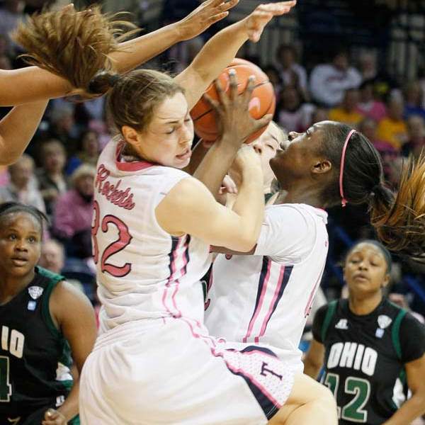 UT's Ana Capotosto, left, and Janice Monakana vie for an offensive rebound in the second half.