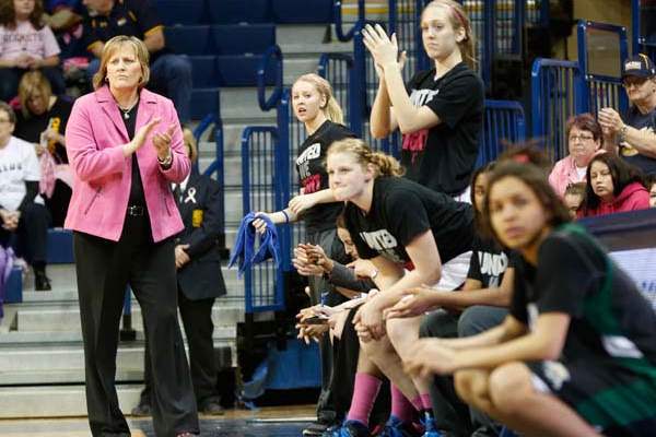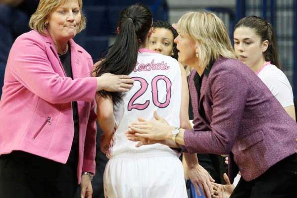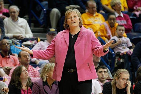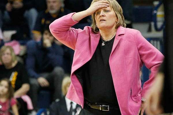 UT coach Tricia Cullop reacts to a call against Brianna Jones.