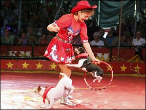 Carolyn Rice performs with her dogs during the Kelly Miller Circus in Sylvania.