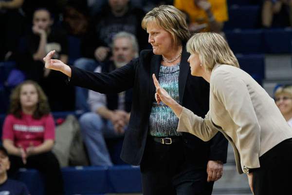 Rockets coach Tricia Cullop, left, and associate head coach Vicki Hall direct the team.