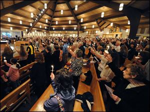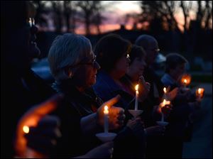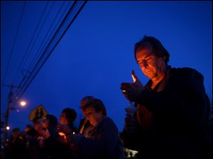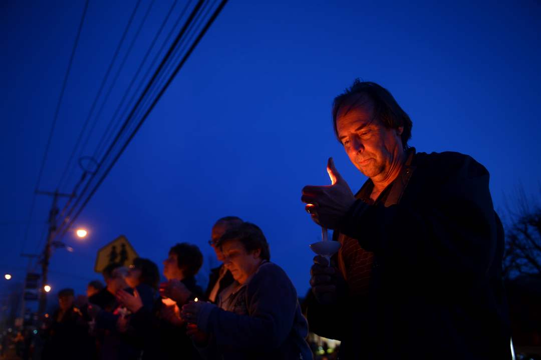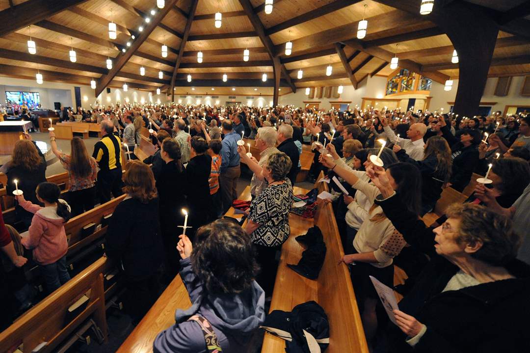 Church goers and community members come together during a candlelight vigil and prayer service.