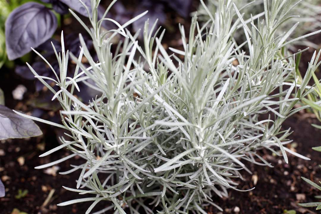 A curry plant in a raised bed.