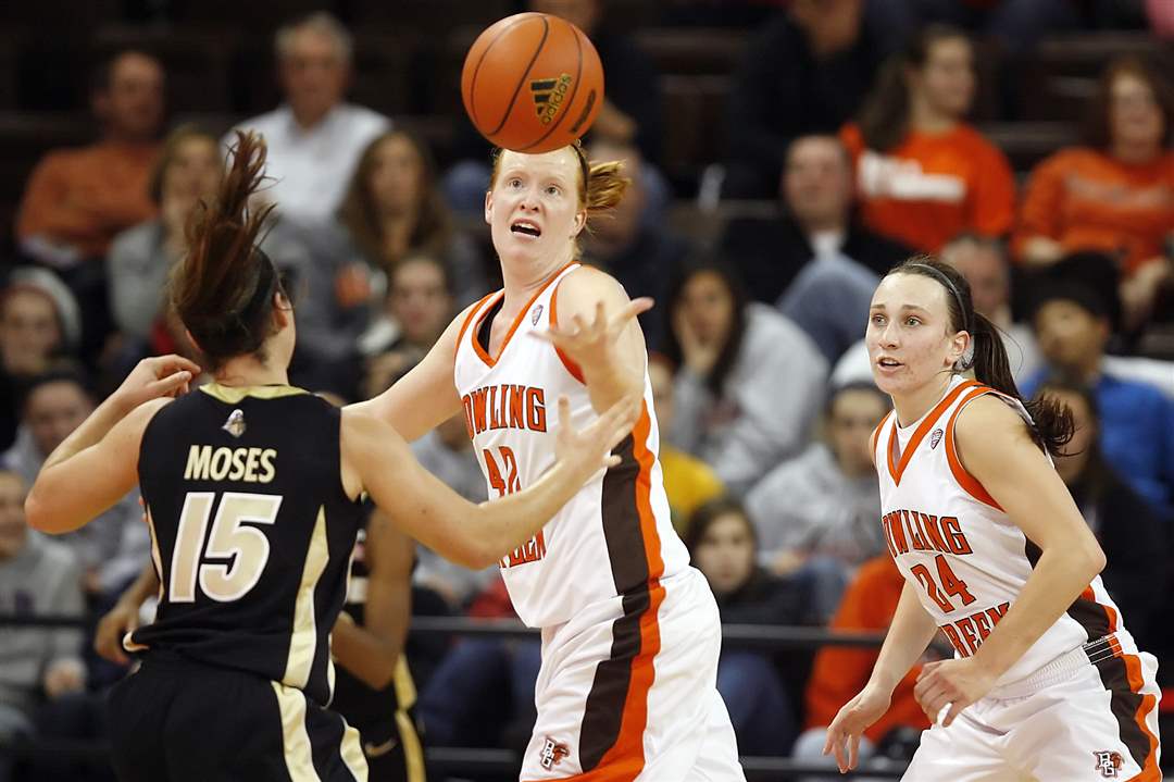 Bowling Green's Havel (42) defends against Purdue forward Antionette Howard (2).