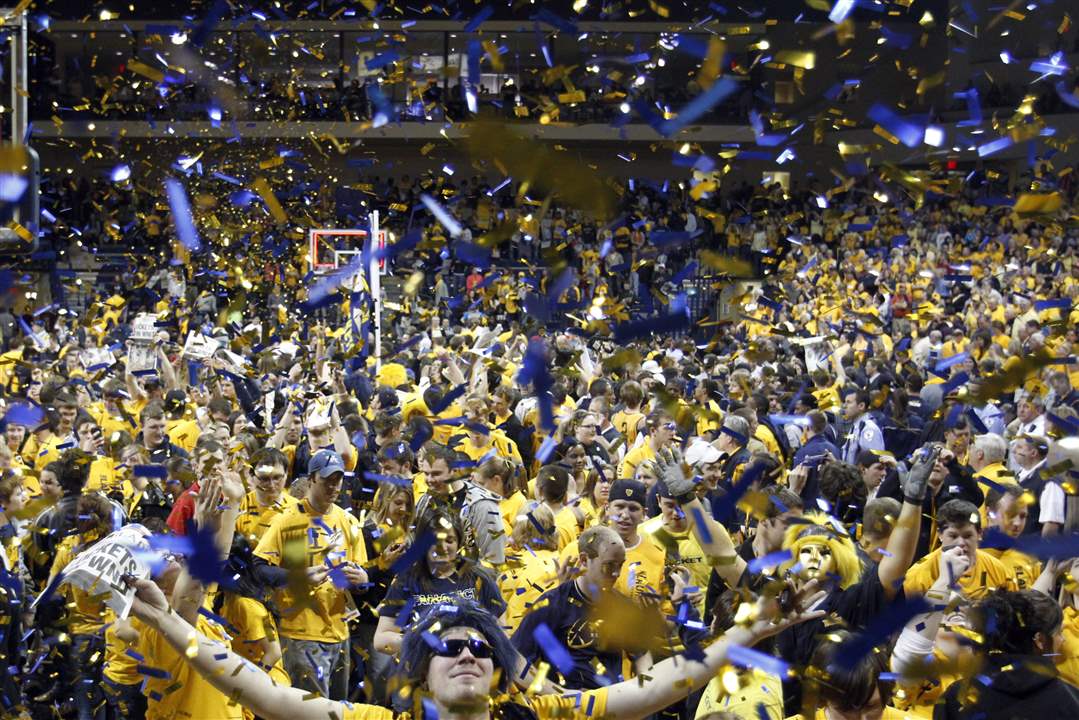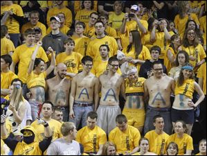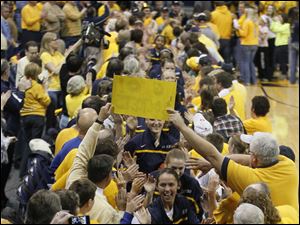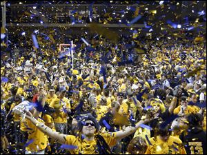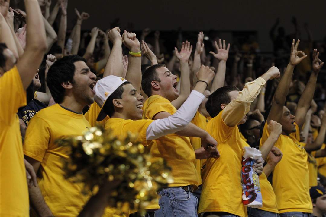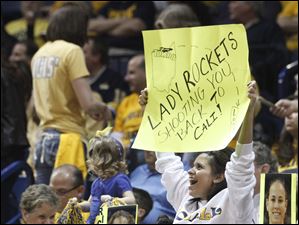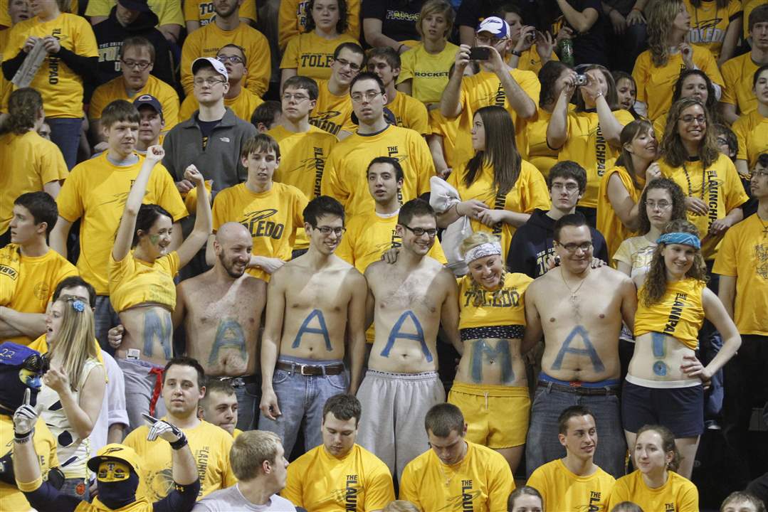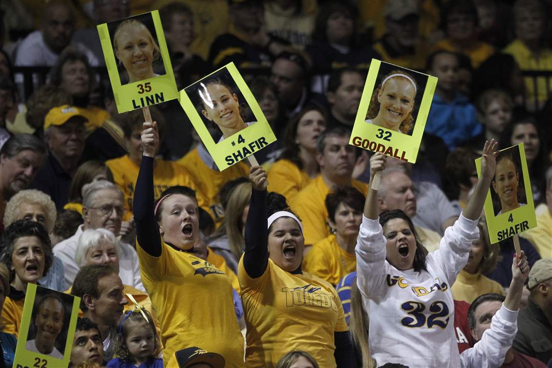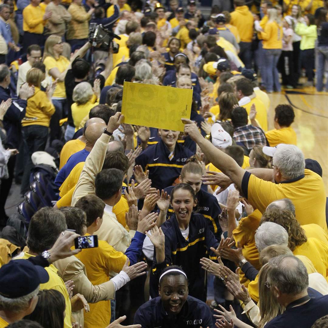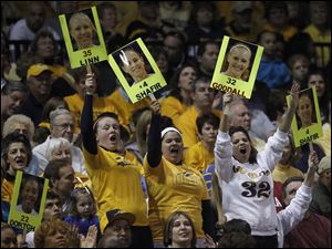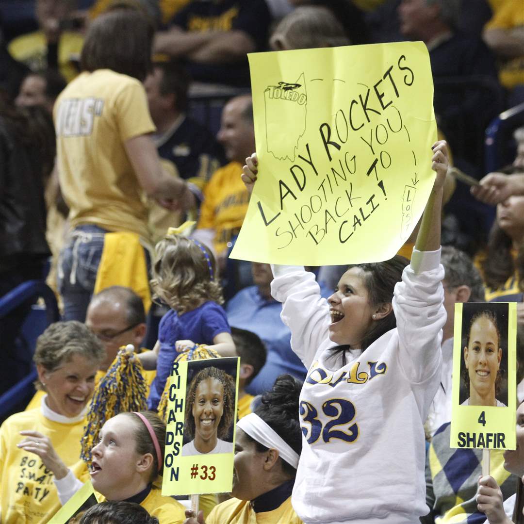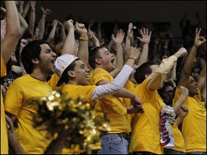 Fans cheer for the University of Toledo against USC during the WNIT final.