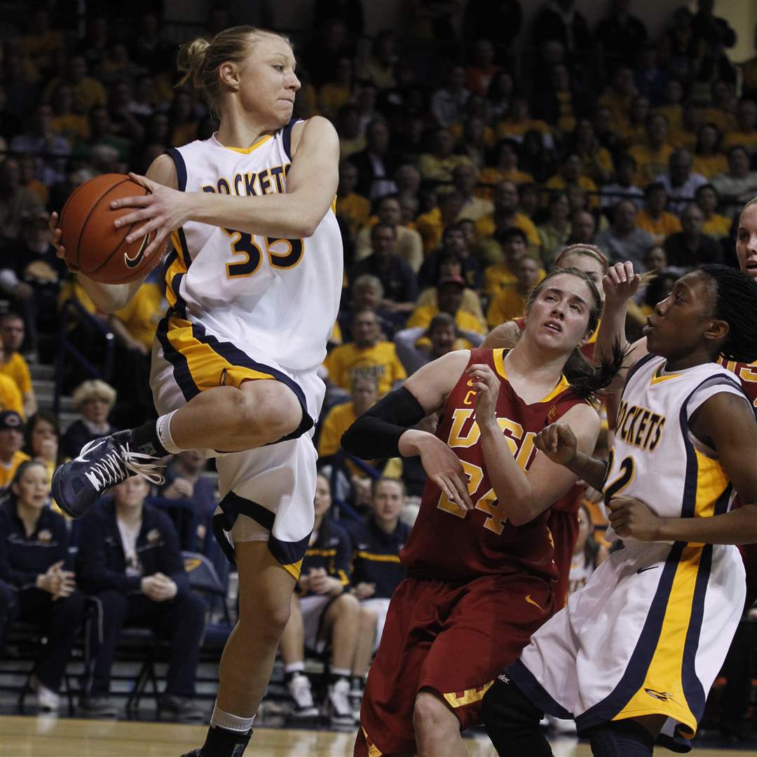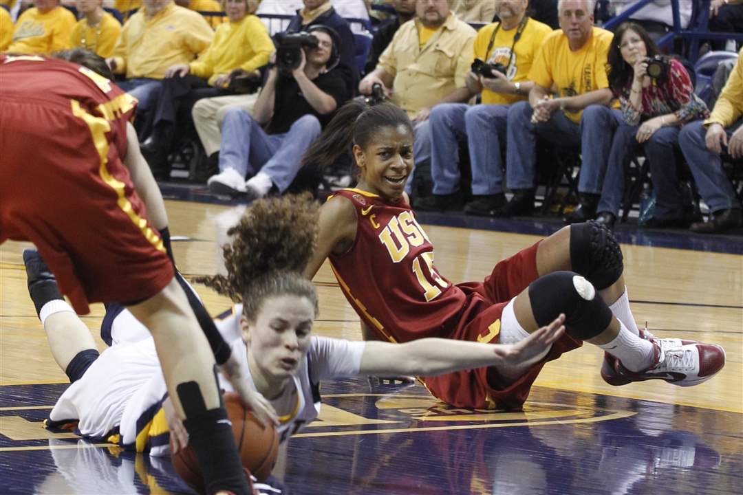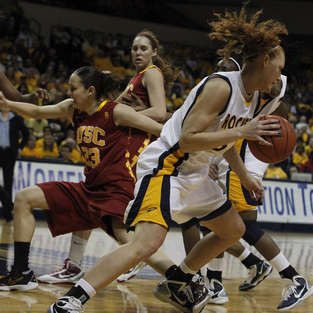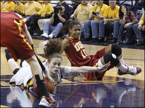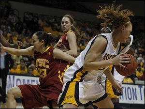 Toledo's Melissa Goodal (32) steals the ball from USC's Jacki Gemelos (23).