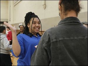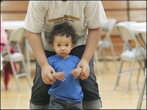 Melissa Witcher, 11, dances with her cousin Noah Johnson, 2.