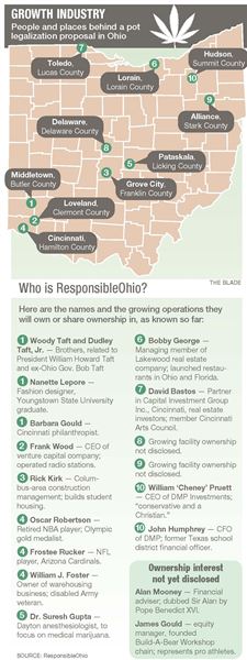 The investors include brothers Woody and Dudley Taft, Jr., relatives of President and Chief Justice William Howard Taft, putting one of the most trusted Republican names in Ohio at the service of marijuana enterprise. The two are investors in a proposed marijuana growing facility planned for Butler County.