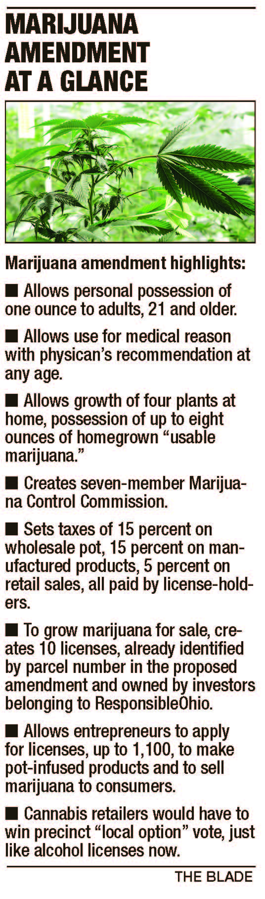 And the amendment sets up the Ohio Marijuana Control Commission to regulate marijuana and award permits for retail marijuana stores.