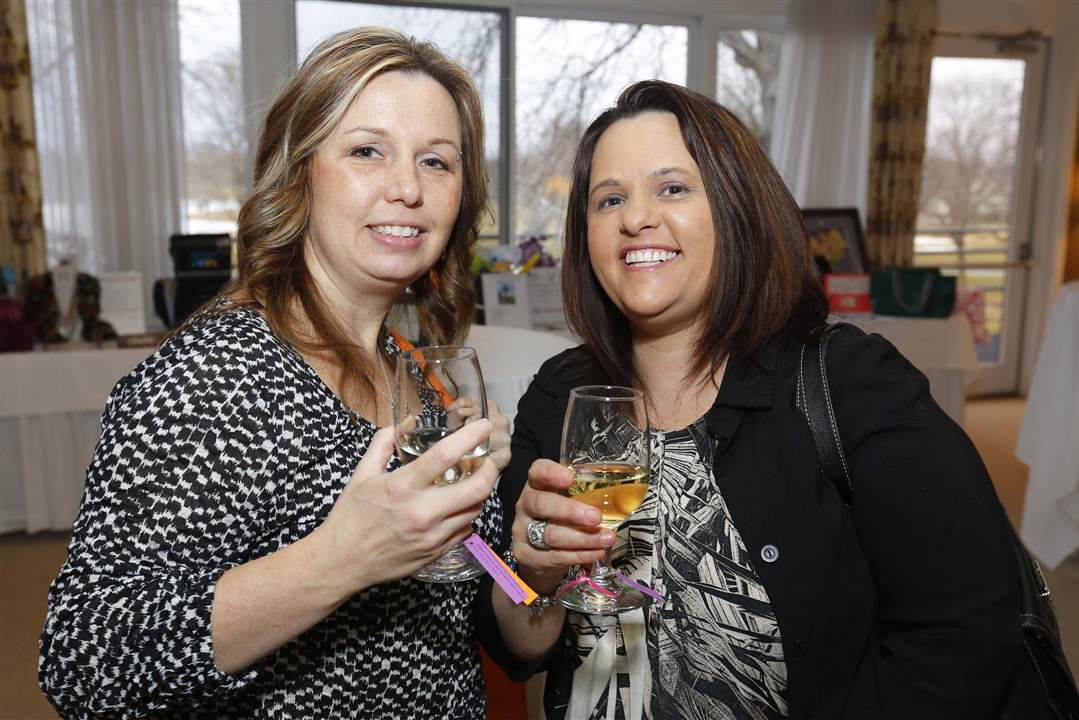 Deb Kocher and Stacy Smith at the Wine, Cheese, and Chocolate event to benefit the Cystic Fibrosis Foundation at Belmont Country Club.