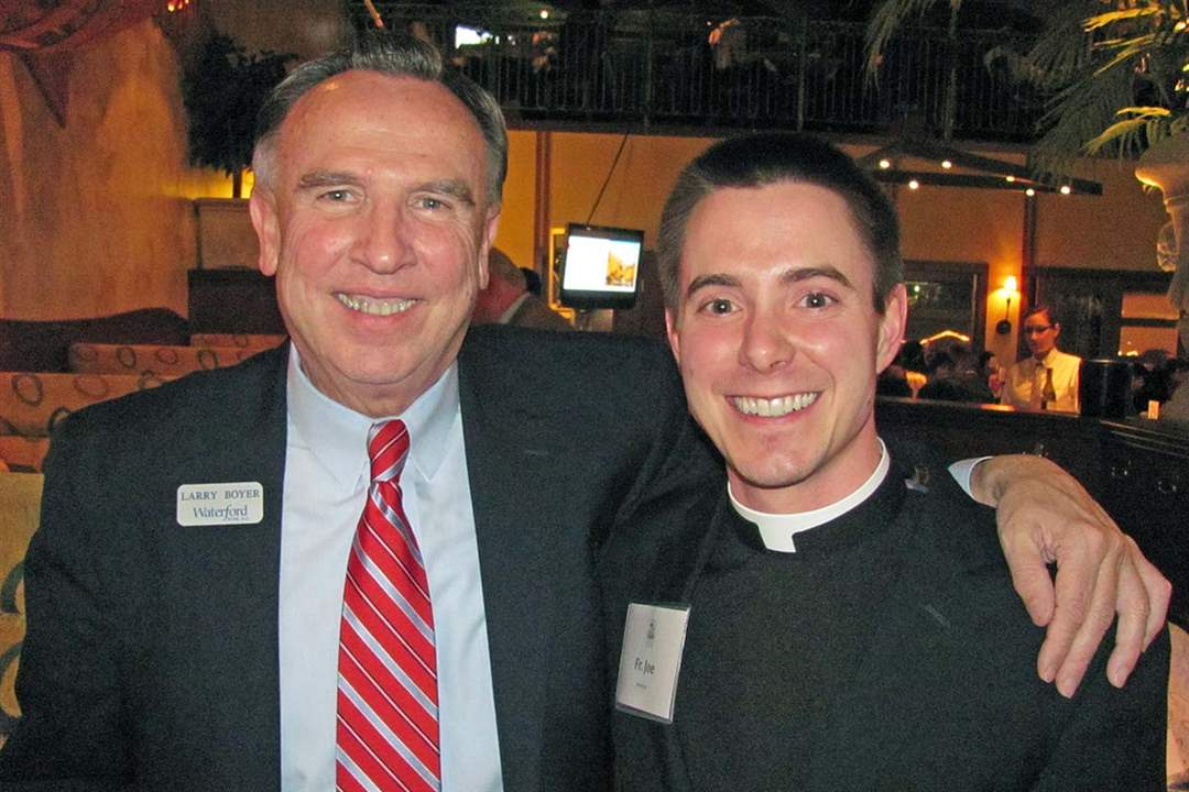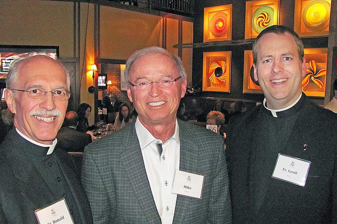 Father Ron Olszewski, school president; Mike Gibbons of Main Street Ventures which hosted the event, and Fr. Geoff Rose, president-elect.