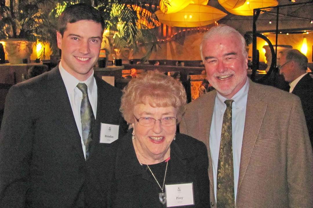 Tom McHugh's son, Brendan, Tom McHugh's mom, Posy, and Tom McHugh, of Heidleberg Distributing, which donated the wines. He is an alumnus.