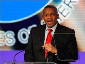 United States Department of Transportation Secretary Anthony Foxx speaks at the North American International Auto Show in Detroit.