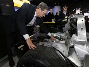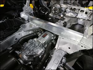 The new Toledo-made transmission used in the Corvette Z06, is shown in a display.