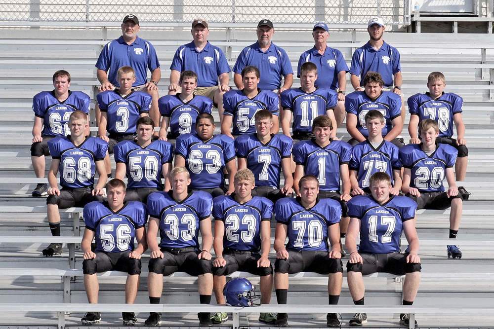 Lake High School football team 2014 FROM LEFT Row 1: Matt Permar, Colin Lloyd, Lukas Lombardo, Austin Hess, Jared Rettig, Andrew Abbey, Todd Walters, Zak Greenlese, Jason Parker, Andrew Rutherford, Chris Allen, Austin Ruess, Connor Bowen. Row 2: Jacob Lee, Matt Szymanski, Nick DeLauter, Jacob Greear, Branden Short, Adam Duncan, George West, Taylor Maxey, Randy Zam, Nathan Banky, Andrew Whitmore, Jerry Smith. Row 3: Zack Cowell, Brendan Eisenhower, Chase Weber, Dylan Cole, Alex Bradfield, Jimmy Urias, Julio Mata, Marty Pennington, Brandon Taylor, Trey Wilson, Darian Brooks, Zach Lighty. Row 4: Nick Eye, Dylan Quinn, Blake Osborn, Jacob Benson, John Flood, Chris Serra, Isaac, Herrera, Aaron Szegedi, Chris Strock, Jacob Rettig, Dustin Perkins, Brandon Knieriem, Nick Alemino, Chandler Peterson. Row 5: Assistant coach Dave Rymers, Assistant coach Jason Schober, Assistant coach Greg Wilker, Michael Cluckey, Ryan Shaffer, Tadan Diebert, Austin Sterling, Tim Recker, Assistant coach Josh Andrews, Assistant coach Kevin Mermin, head coach Mark Emans.