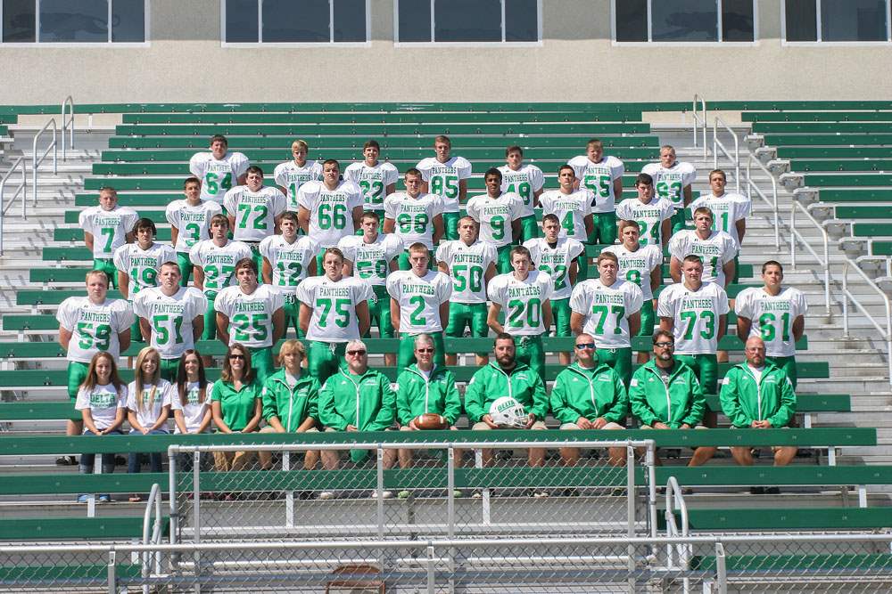 Delta Football 2014 FROM LEFT Row 1: Emily Clifton, Melissa Smith, Keirsten Donaldson, Heather Boley, trainer Brenden Knopp, Jeff Wolford, head coach Jim Kubuske, Kent Corthell, Bill Anderson, Ron Rolean, Scott Tenney. Row 2: Tristen Carter, Mark Francis, Ryan Patchin, Alex Lutheran, Parker Phillips, Michael Walling, Zeke Anderson, Mason Jessing, Caleb Losie. Row 3: Ron Varsys, Dustin Marteney, Ethan Edwards, Bailey Seeman, John Winterfeld, Dustin Myers, Dylan Nostrant, Aaron Abbott. Row 4: Colon Hoffman, Evan Vasquez, Austin Sayer, Chance Veller, Devon Richard, Bailey Storeholder, Noah Parsons, Jesse Beverly, Beau Clausen. Row 5: Sam Wolpert, Gabe Freeman, Dylan Rogers, Travis Dunning, Dustin Cowden, Jake Wolford, David Wandtke.