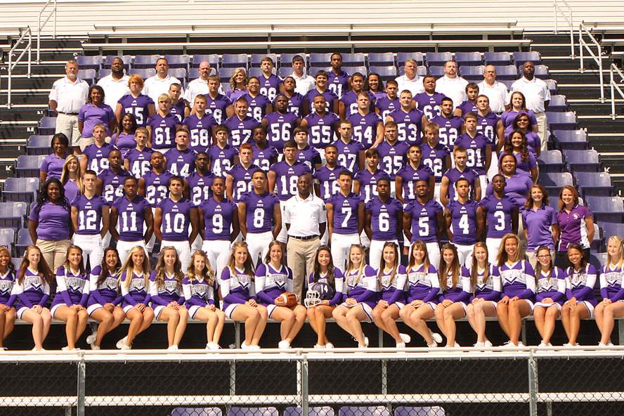 2014 High School Football team photo. Row 1: Cheerleaders Anjelique Hardin, Cassandra Horn, Erika Dukeshire, Mirrea Alaniz, McKayla Swinehart, Julia Zucker, Kennedy Smith, Taylor VonEitzen, Emily Guggisberg, Kylie Mears, Hannah Rowe, Meghan Peicott, McKinsey Whitaker, Gigi Lochotzki, Brittany Holland, Zariyah Baynard, Alisha Miller, Amari Bulger, Brooke Hankins. Row 2: My'Asia Nettles, Boston Swaisgood, Jarren Hampton, Jalen Slick, Uriah Haun, Javon McDonald, head coach Craig Yeast, Elijah Johnson, James Wright, Jeffrey Barnett, Tyler Grine, Russ Yeast, Amber Otermat, cheer coach Melissa Frizzell-Joerg. Row 3: Kelsey Contreras, Trevon Alridge, Isaiah McDonald, Willie Arrington, Austin Busold, Tanner Albert, Stefan Johnson, Nathan Domiray, Samuel Franco, Cody Tyler, Paige Turner. Row 4: Jersie Spears, Caleb Ottney, Nash Miller, Bryce Moreno, Evan Franks, Myles Peters, Hayden Abdoo, Dylan Witt, Ben Root, Sam Detwiler, Tyler Schell, Maricela Saldana. Row 5:Rashonda Brown, Jacob Schott, Kyle Montgomery, Patrick Rusher, Tray Richardson, Alonzo McGhee, Marshall Messer, Evan LeJeune, Garrett Hausman, Cole Beckley, Destiny Richards. Row 6: Erykah Ferguson, Nate Mayle, Xavier Michael, Charlie Clark, Guage Ferguson, Isaac Spears, Alec Carnicom, Alijah Fuller, Ivan Franks, Ryan Thompson-Gray, Derek Fuller, Allyson Brown. Row 7: Trainer Joe Hershey, coach Mike Rankin, coach Chad Long, coach Troy Albright, Marisa Lindsay, T.J. Michael, coach Denton Saunders, Tavarius Simms, Imani Bailey, coach Kim Kettner, coach Trevor Trimble, coach Dennis Tompkins, coach Charles Chapman.