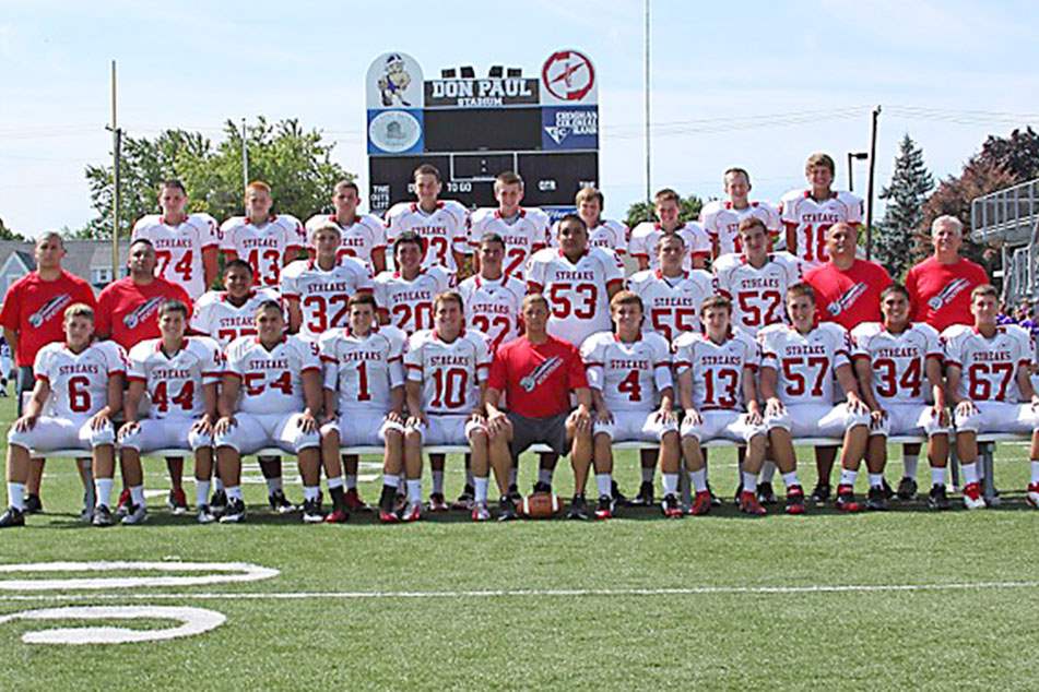 Fremont St. Joseph football team 2014 FROM LEFT Row 1: Gavin Kubat, Brock Schultz, Bobby Mancha, Lucas Michael, Jake Yeckley, head coach TJ Buckley, Kyle Veleba, Kyle Meyer, Parker Stierwalt, Travis Cook, Ben Wonderly. Row 2: Assistant coach Ricky Bierbaum, Assistant coach Vic Brito, Johnny Moreno, Derek Rosengarten, Zach Militello, Jordan Hartley, Alan Refugio, Eric Fulwider, Nathan Burns, assistant coach Mike Schlosser, assistant coach Dave Perin. Row 3: Jacob Darr, Masen Bickley, Ross Snyder, Mason Hirt, Logan Black, Noah Drwon, Dylan Filliater, Tad Foster, Spencer Harrison.