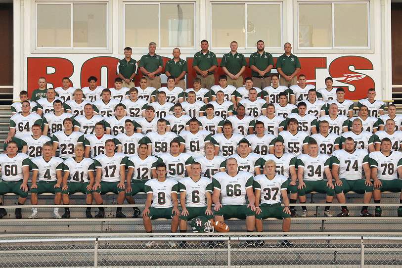 2014 Rossford football team FROM LEFT Row 1: Nate Childress, Cody Igo, John Pupik, Steven Carey. Row 2: Nate Clark, Josh Rymers, Andrew Myers, Alex Hassan, John Allen. Row 3: Bryce Steer, Anthony Carasone, Zach Heath, DeBreon Ross, Casey Orr. Row 4: Cody Orr, Caleb Janicki, Alex LaPlante, Jordan Krause, Brennan Reynolds, Billy Zeller, Kyle Sherman, Travis Sherman. Row 5: Dylan Nawrocki, Ethan Little-Deer, Sam Beale, Eric Davis, Travis Szublewski, Chase Baney, Nick Wagner, Spencer Shultz. Row 6: Ben Sauter, Jeff Hodak, Adam Sauter, Grant Boyer, Jordan Miller, Billy Coyle, Jacob Schimming, Michael Reno. Row 7: Zach Lewis, Joey Korzec Noah Tegtmeier, Reed Jackson, Jacob Perry, Joe Burlage, Brian Maxwell, Sean Clark. Row 8. Coaches Bob Abbey, Chris Jones, Troy Adams, head coach Todd Drusback, Daryl Igo, Eric Keller, Jamie Clay.