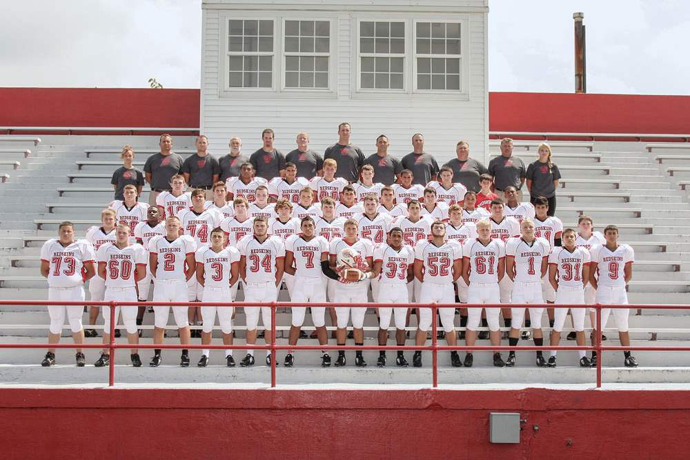 Bedford high school football team photo, 2014. FROM LEFT Row 1: Charlie Gifford, Parth Patel, Drew Garcia, Justin Strickland, Dylan Stewart, Tom Shepherd, Derek Shepherd, Christian Ormsby, Daniel Chang, Austin Reaster, Casey Pollins, Jon Hoskins. Row 2: Keith Fistler, Jared Dawson, Jordan Snyder, Dylan Barr, Ryan Savett, Ryan Libstorff, Austin Teague, Gabe Elarton, Kyle Krupp, Austin Lake, Jacob Steenrod, Jacob Johnson, Jacob Wexler. Row 3: Jordan Prajzner, Sam Haise, Matt Phillips, Brad Williams, Grant Andrews, Ron Wyszczelski, Jordan Kasper, Jake Stark, Tim Stevens, Grant Nieszala, Zach Wentz, Nick Kujda. Row 4: Joe Wiemer, Kyle Kahut, Jarred Nanney, Jesus Ybarra, Michael Decker, Luke Dotson, Nick Hicks, Christian T ownsend, Brendan Zeiller, Austin Jankowski, Brandon Murphy, Chris Augustyniak, Giacamo Pizzo. Row 5: Managers Mya Sherman, Ashlen Gangway, Coaches Joe Moore, Jack Luetke, Dan Lopez, Lee Wood, Jim OÃBrien, head coach Jeff Wood, John Phillips, Geoff Skipinski, Jeff Potter, Dave Potter, managers Kayla Metcalf, Harley Elsten.