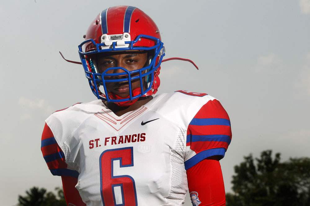 Lamar Carswell, 17, senior running back from St. Francis High School, poses near Steinecker Stadium in Perrysburg.
