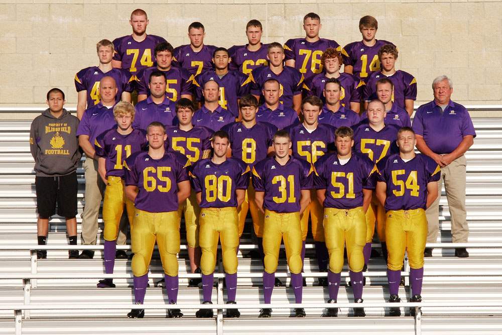 Blissfield high school team photo 2014. FROM LEFT Row 1: Caleb Bangerter, Falcon Wilson, Connor Duval, Josiah Rupp, Sederic Gonzales. Row 2: Nathan Milner, Logan Carmody, Alex Slomski, Harley McKelvey, Jacob Clark. Row 3: Emilio Rosas, coaches Greg Saylor, Tim Shaw, Chad Fetzer, Matt Ganun, Adam Schiermyer, Rob Love, Sam Bell. Row 4: Nick Soss, Adam Forche, Andre Cassanova, Lucas Cassaubon, Lucas Waldvogel, Jason Klauda. Row 5: Ayden Waggoner, Spenser Fisher, Brayden Zimmerman, Josh Hall, Nick Keinath.