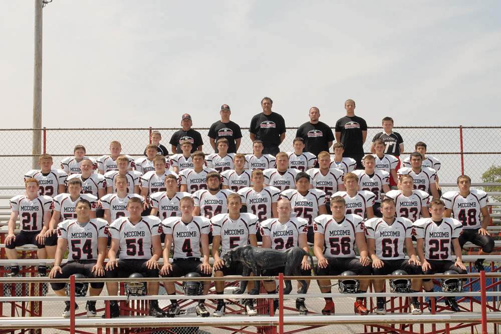 2014 McComb High School football picture. FROM LEFT Row 1: Matt Cataline, Jake Duvall, Trey Hanes, Clay Grubb, Jordan Skilliter, Gabe Rader, Jordan Overton, Jacob Beeson. Row 2: Ryan Sammet, Austin Colich, Austin Davis, Tyler Parker, Noah DelaCerda, Chas Shoop, Saul Blank, Colten Overton, Skye Gustwiller, Tyler Bommanito. Row 3: Jake Crouse, Matt Smith, Malachi Abbott, Nick McDowell, Adrian Grubb, Randy OÃDell, Mike Cherry, Matt Cherry, Caden Schroeder, David Stoepfel. Row 4: Tyler McStraw, Brady Cramer, Mason Amburgey, Michael Ray, Christian Currie, Corey Swisher, Clay Santos, Graham LaRue, Cameron Morris, Jose Canales. Row 5: Coaches Dino Woodruff, Russ Shoup, head coach Kris Alge, Craig Kuester, Pat Kuntz.
