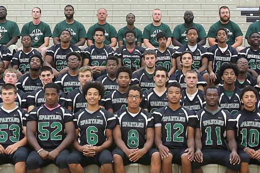 Start High School Football Team 2014. FROM LEFT Row 1: Marcus Harper, Naser Zarour, Tyler Cox, Elijah White, Christopher Lawrence, Jared Burnhill, Brandon Winters, Aaron Williams, Evan Butler, Regis Jones, Daniel Waters Row 2: Tareek Mosby, Joseph Smith, Tyler Braatz, Derek Corey-Goodman, Chris Hale, Brandon Taylor, Anis Galal, Chris Kos, Santo Perez, Conner McCauley, Joseph Burns, Montrell Betts Row 3: Teddy Perozek, Derrick Austin, Shawn T. Phelps II, Stephen Watson, Malik McKinney, David Smith, Corey Foster, Blake Vargas, Aaron Ellis, Castillo Gurtzweiler Row 4: Mitchell Harder, Jack Perozek, Devon Bouyer, Darian Dillard, Jahneil Douglas, Ronald Estelle, Charlie Hereford, Isaiah Pullella, Michael Tucker, Detryck Bell-Singletary, K'Juan Chandler Row 5: Coaches Gardner Howard, Cameron McCualsky, Pete Reese IV, Tyson Harder, Chris McBrayer, Tyler Ritter, Allen Smith, Rob Cameron, Garland Parker