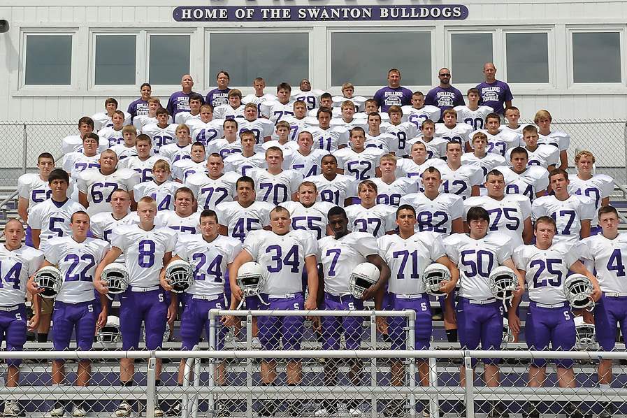 2014 Swanton High School football team photo FROM LEFT Row 1: JD Reisinger, Robbie Gilsdorf, Dylan Sanderson, Jack Waldron, Matt Rainey, Thomas Bryant, Colton Lucio, Jake Timpe, Jordon Nyler, Bryce McComb. Row 2: Noah Johnston, Dean Sego, Zach Nowakowski, Antonio Cervantes, Owen Dodd, Justin Timpe, Nick Sienkiewicz, Caleb Brown, Anthony McCaw. Row 3: Anthony Westfall, Daniel Marks, TJ Baker, Ben Burke, Austin Jones, Sam Incorvaia, Hunter Schad, Deric Mersereau, Chase Fetterman, Tylor Prentice. Row 4: Aaron Hazlett, John Swing, Keaton Davis, Jonathan Shanks, Connor Yaney, Zach Dziengelewski, Nick Rainey, Dakota Straub, Evan Lutz. Row 5: Crew Oberheim, Zack Leahey, Gage Pachlhofer, Lukas Reiner, Zach Bloom, Gunnar Oakes, Chase Avalos, Nick Koback, Tanner Prentice, Christian Aumiller. Row 6: Brock Ueberroth, Hunter Albert, Fred Blankenship, Isaac Thomas, Skyler Ulch, Marek Spiess, Bryton Boone, Greg Wilson, Dustin Sego. Row 7: Dylan Cook, Chase Moore, Noah Saunders, Tommy Lytle, Josh Kohlhoffer, Reece Pawlowicz, Branson Knott, Robert Dulap, Ethan Frost. Row 8: Genna Fucos, Tim Spiess, head coach Mike Vicars, Anthony Howard, Joshua Wilson, Weston Miller, Mark Nagel, Daniel Grime, Dennis Dziengelewski. Not Pictured: Clayton Ringle, Andy Marashdeh, Scott Floyd, Ryan Vicars, Dustin Lytle.