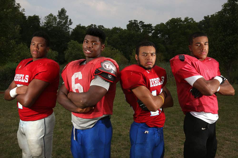 Lake High School football players from left, Branden Short (43), Todd Walters (10), Jared Rettig (5), and Adam Duncan (23).