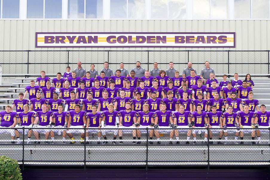 Bryan High School football 2014 FROM LEFT Row 1: Trevor Roehrs, Derek Knisely, Zacheriah Phillips, Zach Dean, Kyle Stoller, Nate Rau, Gavin Saul, Hayden Hageman, Bronson Beck, Lane Azzarello, Ethan Retcher, Brandon Dean, Taylor Shindledecker, Paris Creek, Drew Ridgway, Sawyer Miller Row 2: David Rummel, Trent Johnson, Lucas Grim, Drew Laukhuf, Jacob Hausch, Chance Taylor, Chris Wittler, Corbin Garza, Christian Riddle, Tyler Jones, Jacob Kuba, Bobby Kimble, Brant Hall, Tim Gonzales, Josh Jones. Row 3: Tylre Wirth, Dakota Crites Osmun, Jordan Robb, Bleus Creek, Jordan Armbruster, Sam Culler, John Rittenhouse, Lucas Nye, Ryan Pokornik, Clayton Farrell, Conor Wieland, Blake Harwell, Damon Beltz, Mason Oliphant, Jacob Garza Row 4: Brady Shankster, Brandon Ferrell, Josh Kuhn, Colt Arthur, Alex Miller, Chema Sanchez, Davontae Royster, Travis Beck, Danny Mytczynskj, Adam Herold, Zac Goodspeed, Hannah Goodrich, Connor Arthur, Nate Miller, Adrian Bush. Row 5: Carver Kline, Coach Kline, Trainer McBride, Coach Lakes, Coach Garza, Coach Goodrich, Coach Smith, Coach Bentley, Coach Kuszmaul Not pictured: Dylan WagnerHandout