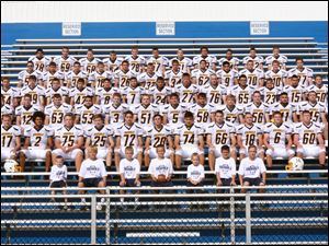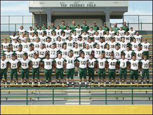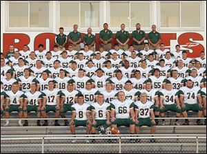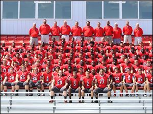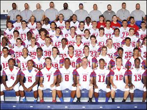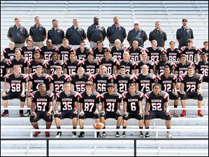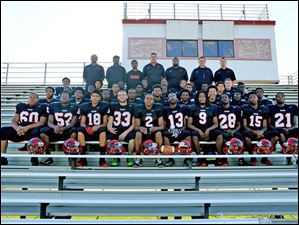 2014 Bowsher High School football team FROM LEFT Row 1: Tim Carpenter, Domantay Woods, Doniven Clark, Justus Satterfield, Vince Hill, Marlino Menchaca, Tim Booth, Kortlan Young, Willie Richburg. Row 2: Steven Wood, Nathaniel Maddox, Jonathan Maddox, Payton Wright, Chris Harris, Desmond Taylor, Demutrices Johnson, Ed Holt, D'Ack Mack. Row 3: Rick Hrebic, Jesse Orosco, Austin McDaniel, Khalil Peace, Anthony McClain, Raphael Perryman, T.J. Mack, Tre Gregory Chris Suddeth. Row 4: Jason Johnson, Evander Morant, Ricky Wilhlem, Anthony Teniente,Tylin McCauley, Owen Rosebrock, Alfonso Valle. Row 5: Cam'ron Golas, Doug Rhine, Cashious Jones, Rodney Ray, Jalen Elliot, Bryce Mitchell, Kwame Carruthers, Mike Kohler, Deontae Smith.