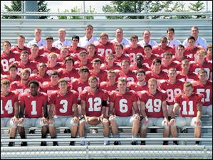 Maumee football team 2014 FROM LEFT Row 1: Darius Ray, Drake Cleghorn, Zak Mathias, Justin Simms, Scott Durham, Brian Autry, Khalid Henry. Row 2: Andy Stead, Brian Utter, Jeff Goatley, Cahle Puhl, Adam Zonner, Autin Portillo, Diallo Lane, Daire'yon Watson. Row 3: Jacob Hart, Liam Johnson, Jacob Gibson, Joey Allard, Jeff Williams, Pete Fritz, Austin Hazard, Elliott Frankhouse, Austin Calopietro. Row 4: Garrett Camp, Josiah Nolan, Steve Hill, Rhett Stevers, Isiah Khalfani, Jesse Taylor, CJ Chilupe, Nate Christensen, Seth Voigt, Jack Yeager. Row 5: Assistant coach Marc O'Neil, John Henry, Donquaveus Wyatt, Donovan March, Andy Brogan, Da'Sean Ray, Emile Ulis, Casey Simpson, Jacob Chambers, Ruff Jakobiak, assistant coach Zach Scarbrough Row 6: Head coach Marc Gibson, assistant coach Ken Walczak, Alec Michalski, Nic Drown, Nate Conrad, Hunter Thomasson, Ryan Harrison, Caleb Brown, assistant coach Brian Buck, assistant coach Zach Graven Row 7: Trainer Kurt McClurg, coaches George France, Bryant Hoffman, Brad Hoffman, Tim Wilhelm, Conrad Kolbow, Jordon Jakacki, Cam Coutcher, Greg Silm, team physician Dr. Gary Gladieux.