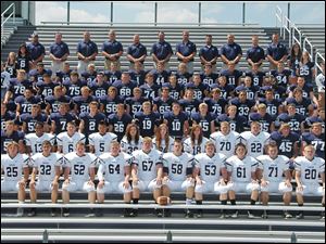 Perrysburg football team 2014 FROM LEFT: Row 1: Ian Barley, Griffin Janssens, Michael Bogdanski, Greg Myak, Stephen Poll, Kyle Recker, Randy Mikonowicz, Connor Jordan, Coach Matt Kregel, Scott Freeman, Kaleb Mahler, Dillon Timbrook, Quinn Thomas, Seth Durham, Cale Bonner, Grant Davis. Row 2: Nick Mossing, Casey Szczublewski, Huan Liang, Jack Barteck, Cole McClary, Zach Honsberger, Gus Dimmerling, Trevor Hafner, Evan Conley, Jake Myers, Ryan Smith, Andrew Boring, Josh Haynes, Matthew Stacy, Jake Sponsler. Row 3: Will Suarez, Evan Schroeder, Chaz Westfall, Jin Ch o, Noah Lenz, Chase Newton, Patrick Marquette, Dominic DiSalle, Chris Jurski, Tyler Welling, Logan Cote, Austin Mezinger, Parker Williamson. Row 4: Connlly Isaacson, Matthew Davidson, Noah Rossler, Kaleb Schetter, Grant Delas, Bryce Gankosky, David Smith, Austin Soulier, Jaret Reynolds, Zack Hermann. Row 5: Adrian Fairbank, Jackson Klusmever, Drew Beier, Ryan Riggs, Rimawi Abdulah, Carson Vrzal, Tim Selhorst, Michael Murphy, Drew Adams, Devin Rodkey. Row 6: Cory Kramer, Tyler Welling, Connor Meredith, Michael Pavelko, Hayden McClary, Paker Beach, Connor McCullough, Andrew Finfrock, Adam Watkins.