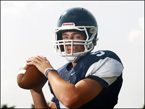 Jared Rettig, 17, senior quarterback from Lake High School, poses near Steinecker Stadium in Perrysburg.
