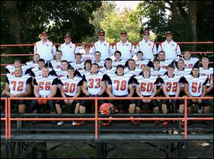 The 2014 Whiteford High School football team in Ottawa Lake, Michigan FROM LEFT Row 1: Preston Schrier, Christian Carpenter, Blake Wing, Micah Cossins, Jessie Kiefer, Jacob Shelton. Row 2: Andrew Mercurio, Cody Kiefer, Jake Becki, Josh Beck, Garrett Hetzel, Hunter Nagle, Austin Cairl, Kris Wingerd. Row 3: Assistant coach Kris Hoag, Kevin Kaufman, Joe Link, Aaron Inman, Phoenix Mullins, head coach Jason Mensing, trainer Kelsey Shearman. Row 4: Assistant coach Bob Ondrovick, Tyler Wilson, Steven Bieber, Mitchell Iott, Nathan Wingate, Jay Gilmore, Jim Nagle, Tom Eitniear.