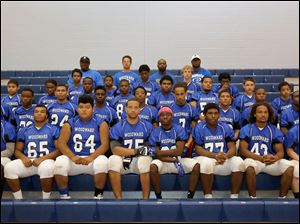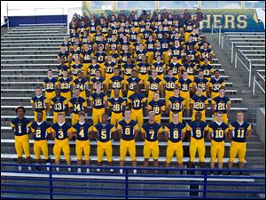 2014 Whitmer football team FROM LEFT Row 1: Zachary Smith, Luck Pressley, Zac Ryan, Zach Kubicki, Larry Patterson, Chase Bodeman, Elijah Elliott, Chris Kruger, Casino Stacker, Craig Conkle, Bailey Henkle. Row 2: Brendan Larkin, Jamal Bell, Anthony Coates, Robby Tober, Shue Sanders, Alex Miles, Ethan Snook, Adam Hanna, Mitchell Kubicki, Coy Bacon. Row 3: Moe Abdel-Karim, Dominic Okdie, Royce Colbert, Jesus Avila, Alex Ribas, Leon Foreman, Matt Stockdale, Parker Lopez, Keenan Baker, Cameron Cherry, Kaden Keller. Row 4: Malik Moore, Devan Gardner, C.J. Wilkinson, Tanner Boros, Justis Paredes, Derrick Malone, Cooper Huth, Garret Stallkamp, Darnell Cathey, Eddy Vasquez. Row 5: Austyn Melroy, Luke Walling, Ian Golembiewski, Sean Sofo, Deshaun Bills, Alec Bukowski, Trevor Wiskochil, Mike Rickard, Kobee Houghtlen, Ricky Estis, Zach Miller. Row 6: Nick Makras, Zach Jacobs, Tyler Smith, Dominic Mauder, Jacob Kreger, Trenton Stricker, Lance Hale, Jimi Ross, Anthony Govan, Kyle Evanoff, Adam Hem, Malik Hardin. Row 7: Trevor Sumner, Ricky Turner, Austin Hiner, Justin Fordham, Russell Johnson, Brandon Sortman, Craig Kirsteins, Shane Logan, Tank Cummings, Andrew Szymanski. Row 8: Everett Tremmel, Mohamed Aride, Andrew Shuherk, Dayton Siemieracki, Cameron Caris, Luke Speweike, Nick Witcher, Travis Nimeigean, Hayden Graham, Kyle Walsh, Phil Hoskins. Row 9: Coach Don Molloy, coach Ihrsad Bannister, trainer Dave Haman, Joe Woolery, Josiff Mathile, Andrew Williams, Jake Pelleteri, Darnea Merrell, Joe Krasniewski, Scott Reichow, trainer Aaron Saga, coach Tom Nolan. Row 10: Coaches Dave Laser, Eric Brown, Mike Williams, Ken Winters, Curt Hartman, Brad Densmore, head coach Jerry Bell, Wondell Hills, Brandon Carter, Justin Keller, Greg Kubicki, Rob Branyan, Stan Meinen.