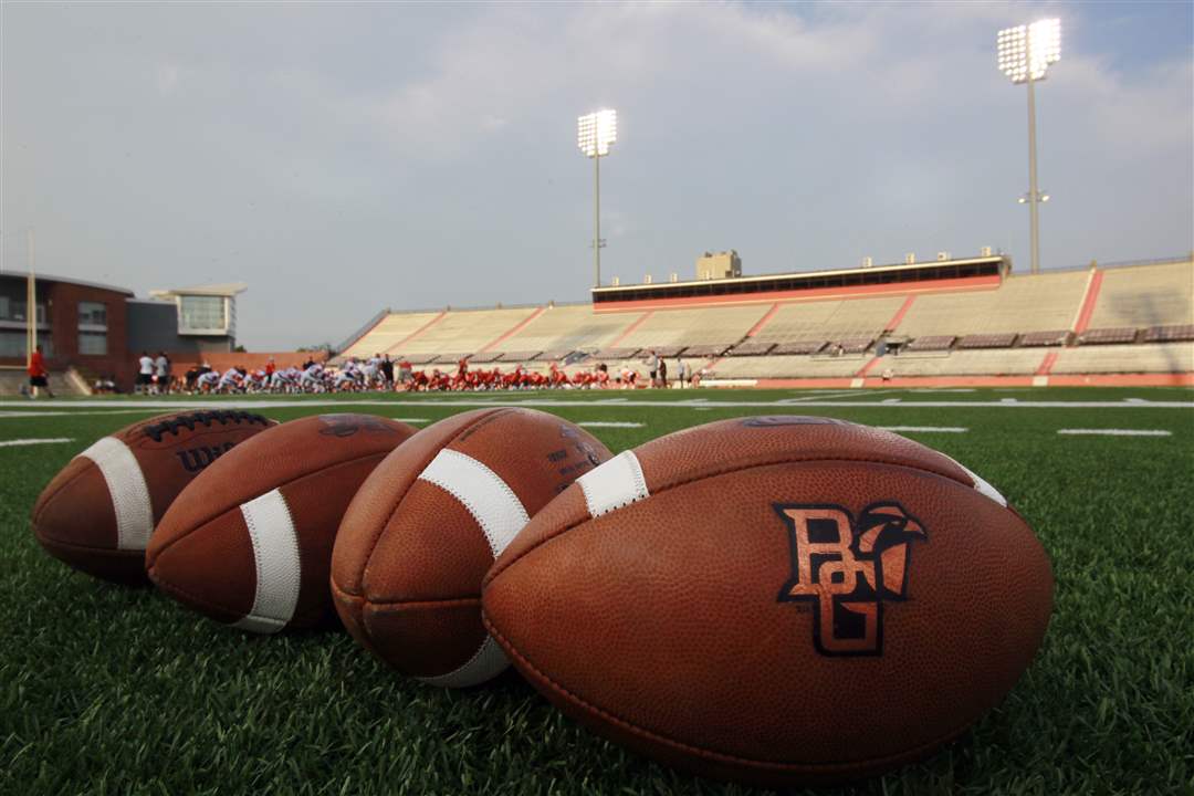 Jerseys and headsets sit on the bench before the scrimmage. The game was BG's second scrimmage of fall camp.