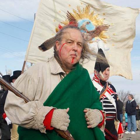 Ken Roberts leads his local LaCroix Militia unit into battle the River Raisin National Battlefield Park to the Monroe Multi-Sports Complex in Monroe, Mich.