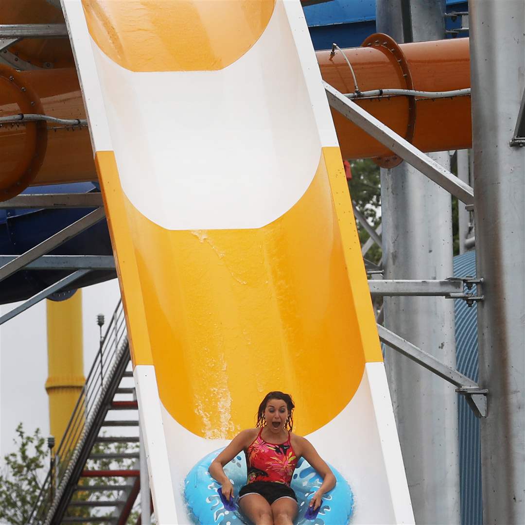 WTOL's Allie Hausfeld screams as she rides the new attraction Portside Plunge at the newly renamed Cedar Point Shores Waterpark in Sandusky. The waterpark has 17 attractions in total, including two new rides and two new children's areas. Portside Plunge features a five-story-high water slide with inner tubes.