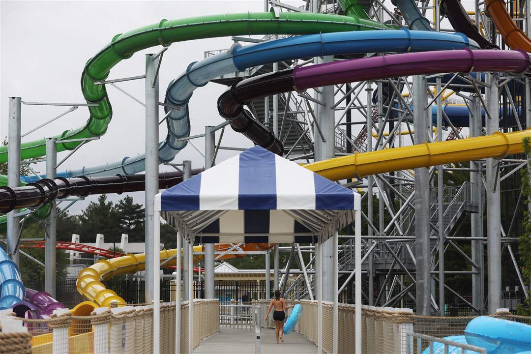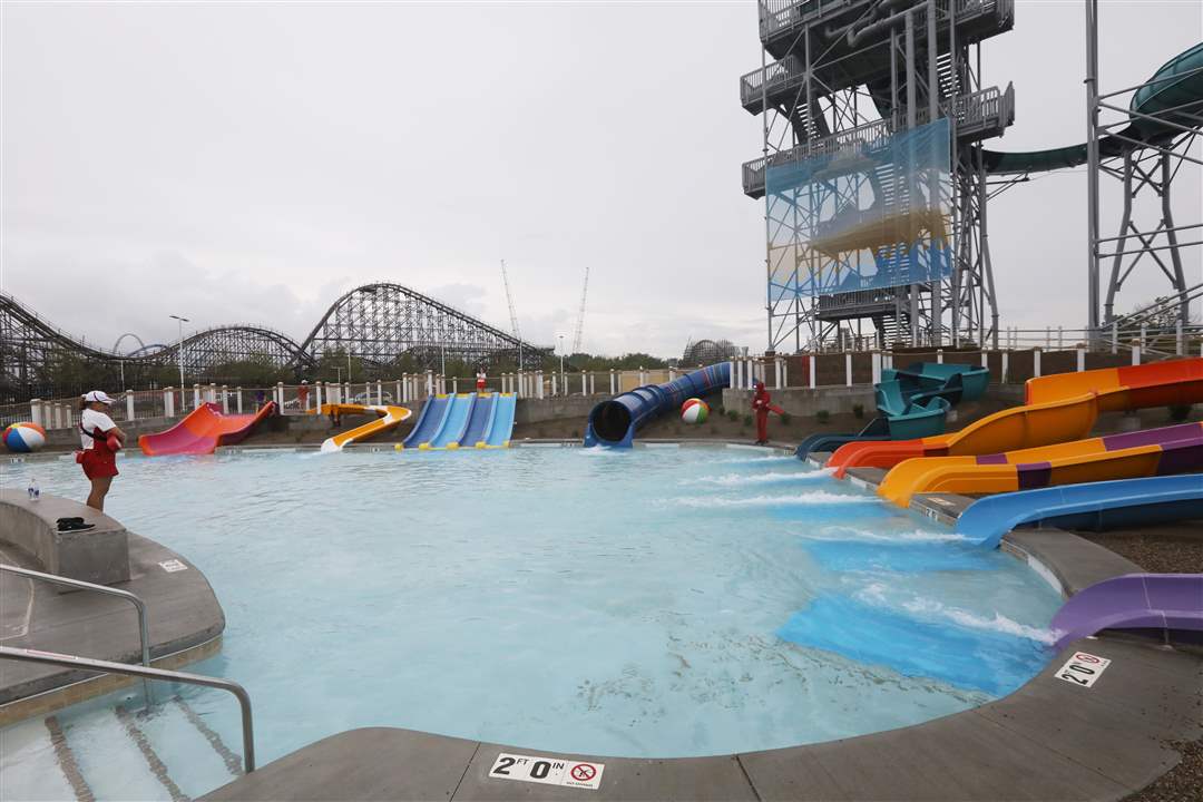 New attractions Point Plummet, left, and Portside Plunge, part of the newly renamed Cedar Point Shores Waterpark in Sandusky. The waterpark has 17 attractions in total, including two new rides and two new children's areas.