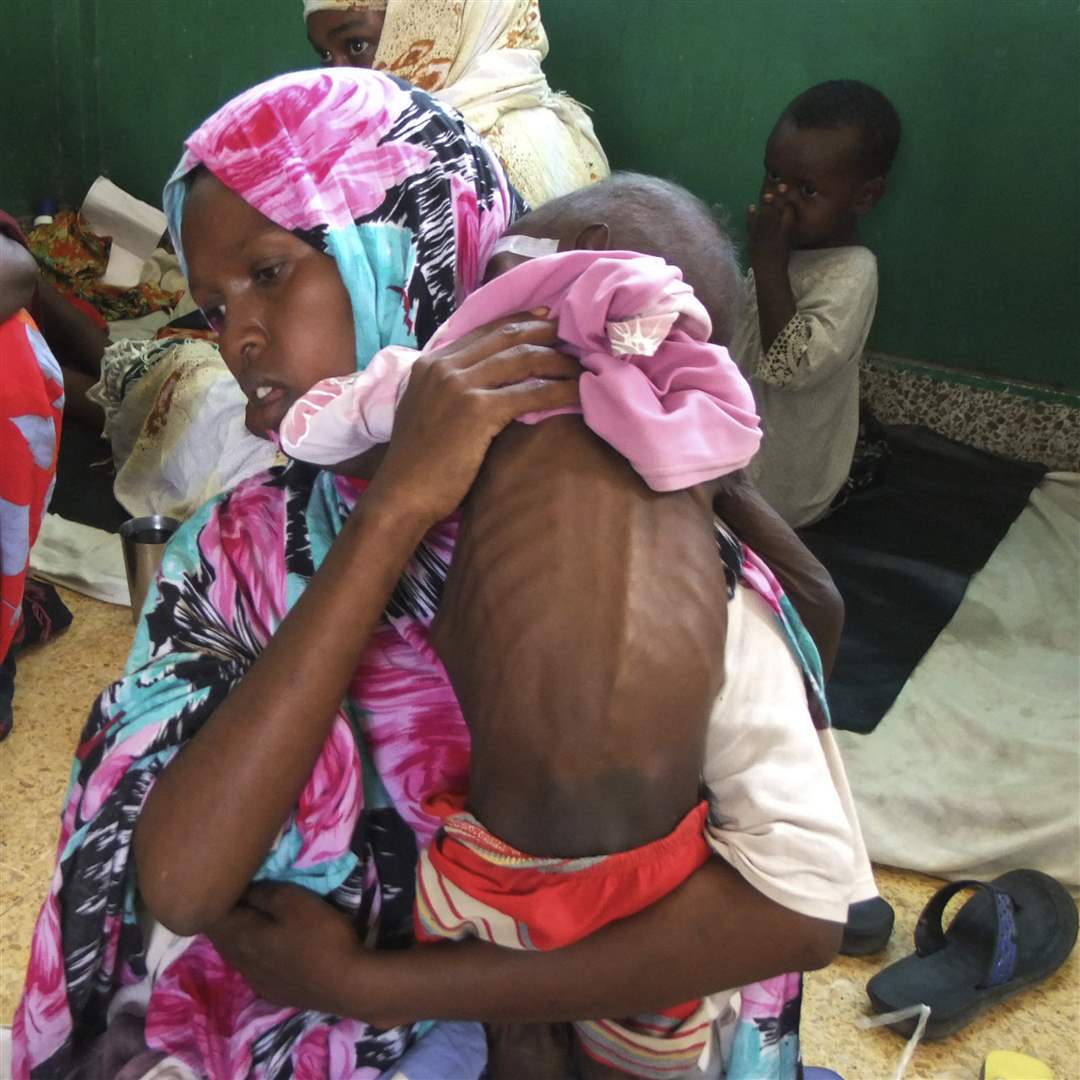 A woman sits with her child at a local hospital as she receive treatment for malnutrition at the border town of Dadaab, Kenya.