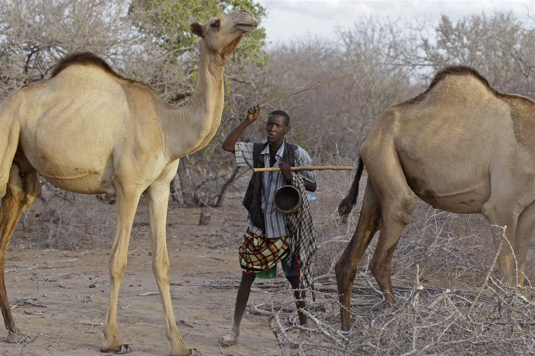 A man herds his camels near the border town of Dadaab, Kenya.