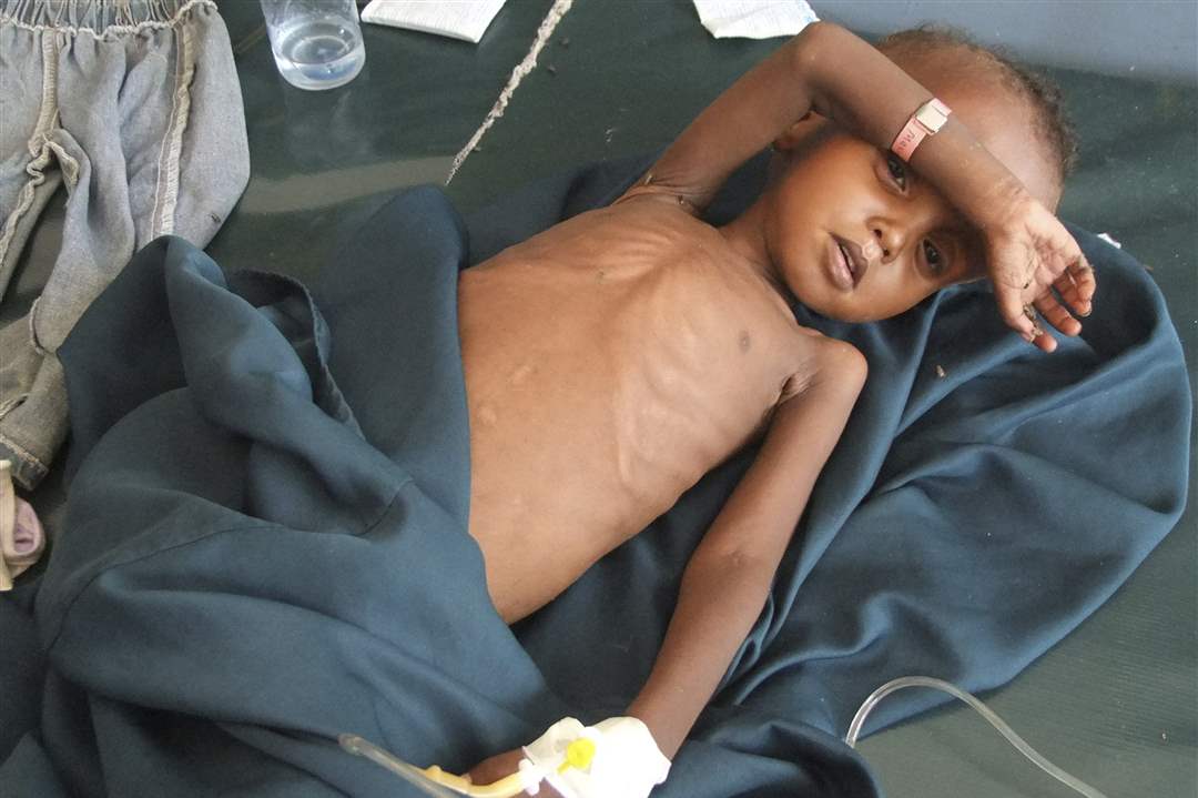A Somali child from southern Somalia is treated in Banadir hospital in Mogadishu, Somalia.