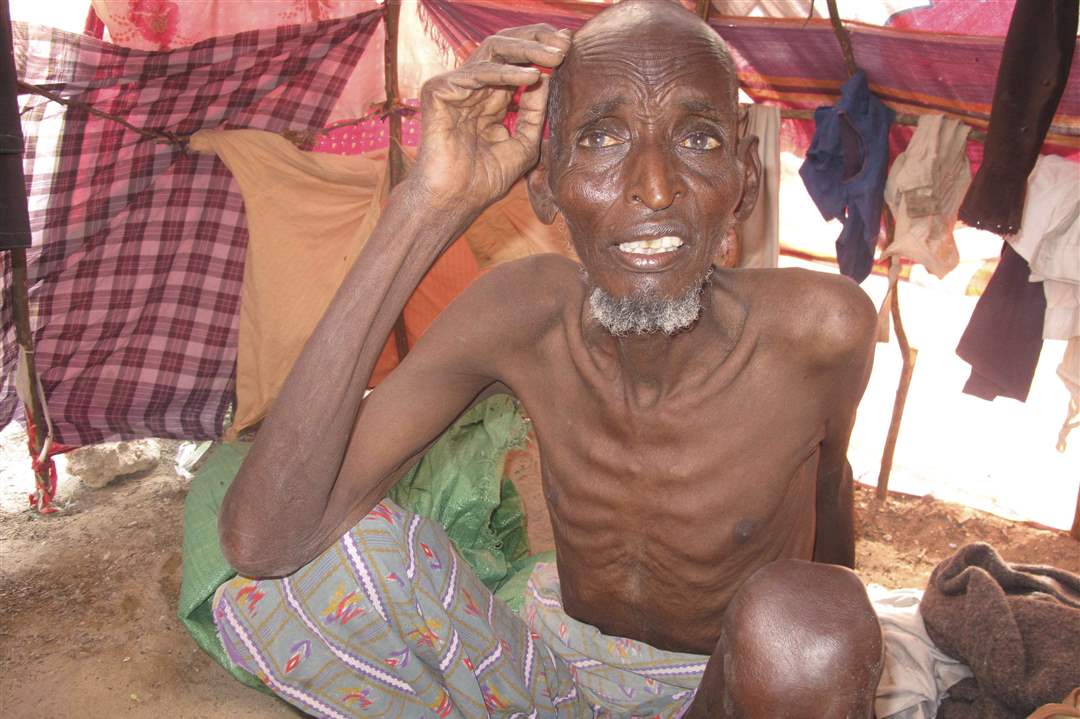 A man from southern Somalia rests in a makeshift shelter in Mogadishu, Somalia.