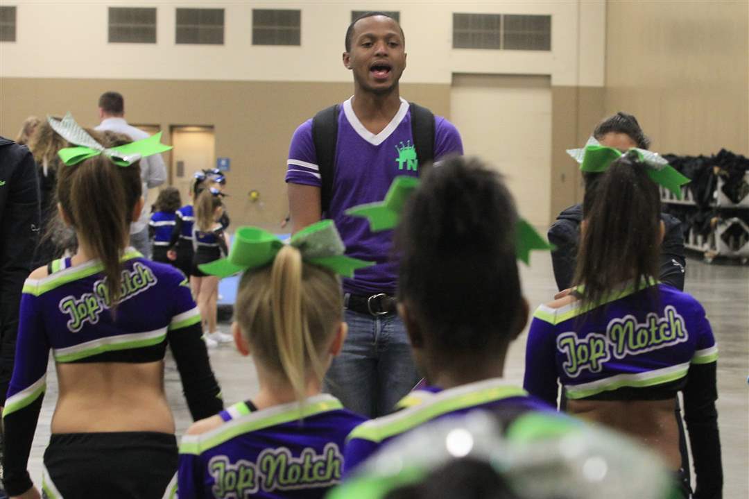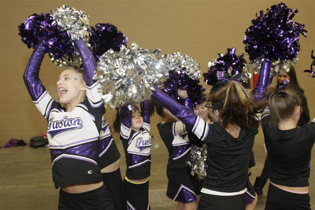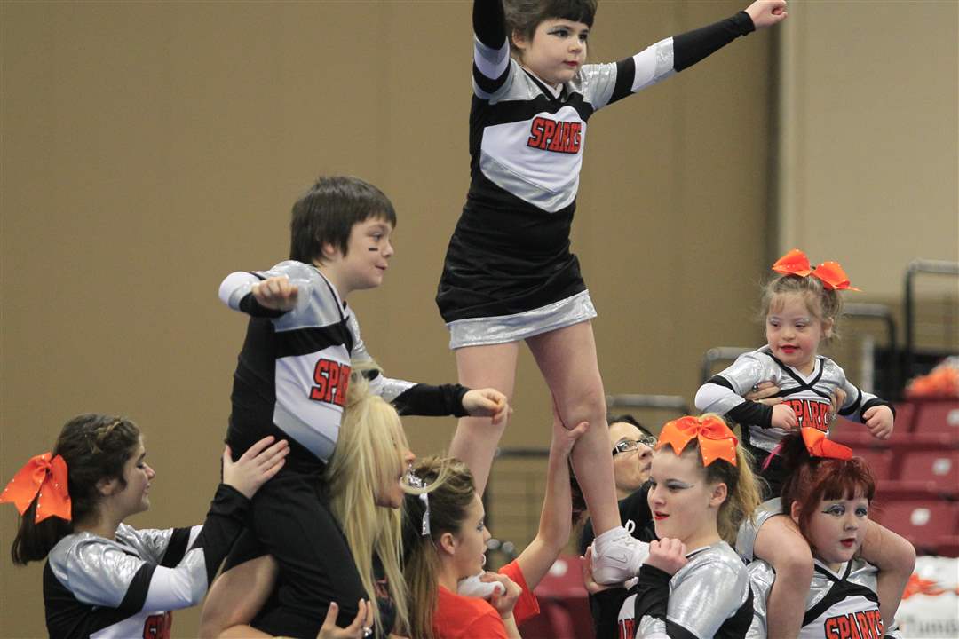 Sparklers cheerleaders Alvin Gibson, left, Izzie Vandyke, and Kayliegh Long, 6, all of Toledo. Sparklers is a special needs team from CheerWorks Sparks of Toledo.
