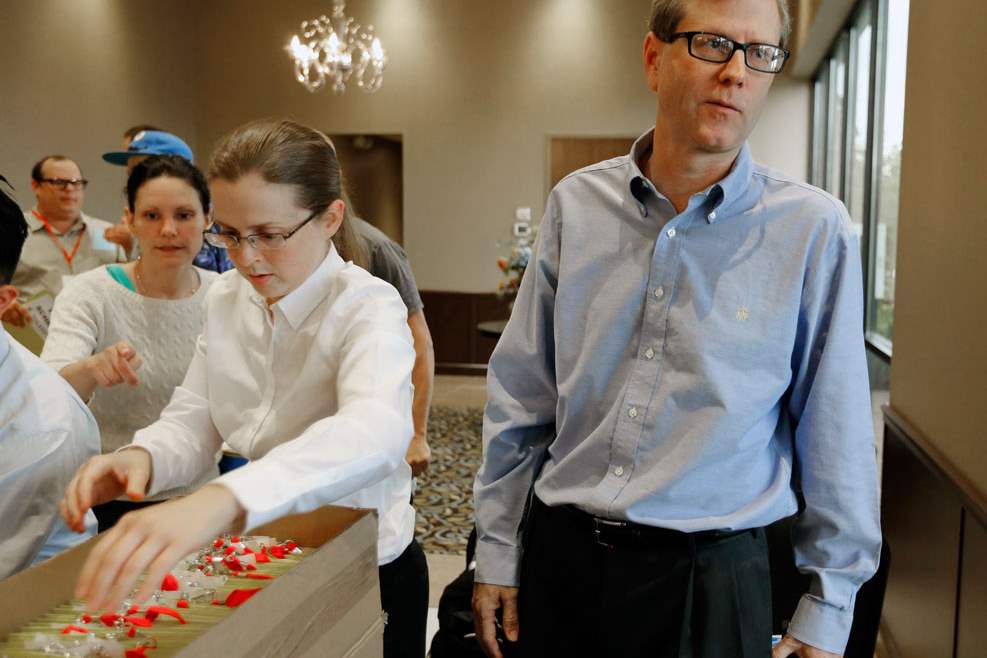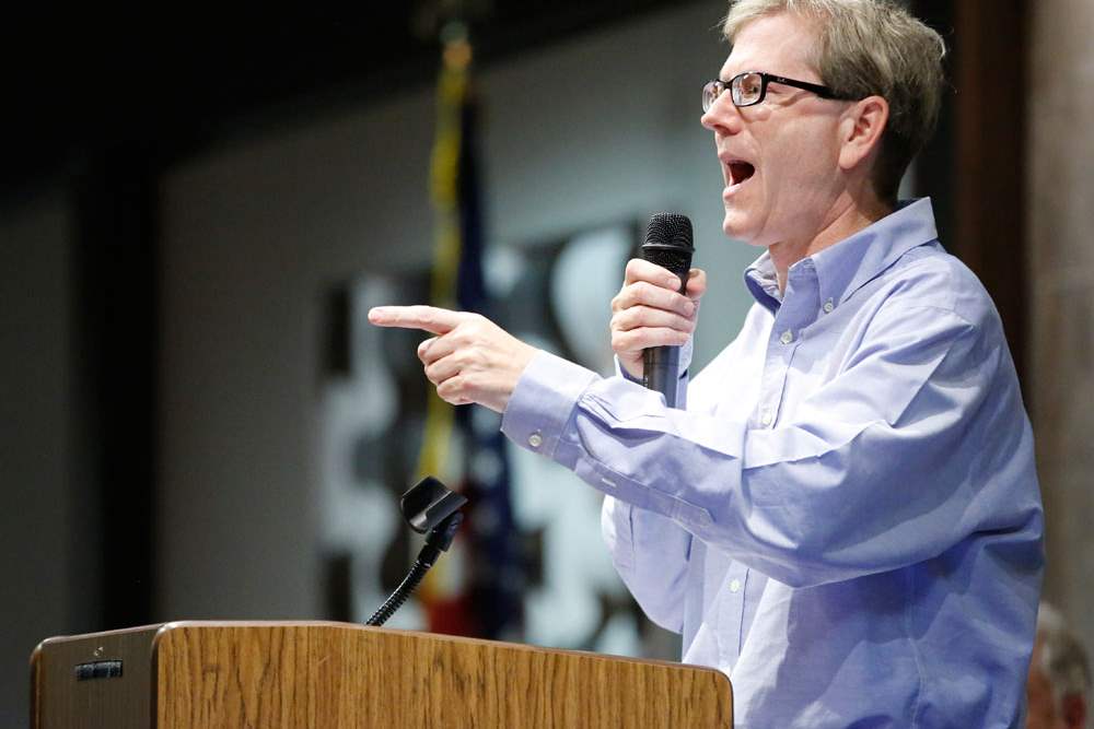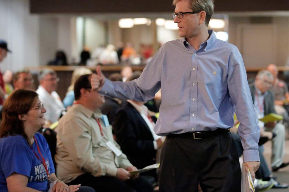 Jon Stainbrook defeated Bill Delaney for chairman of the Lucas County Republican Party during the Lucas County Republican Party Central Committee meeting Wednesday, 06/11/14, at The Premier in Toledo, Ohio.