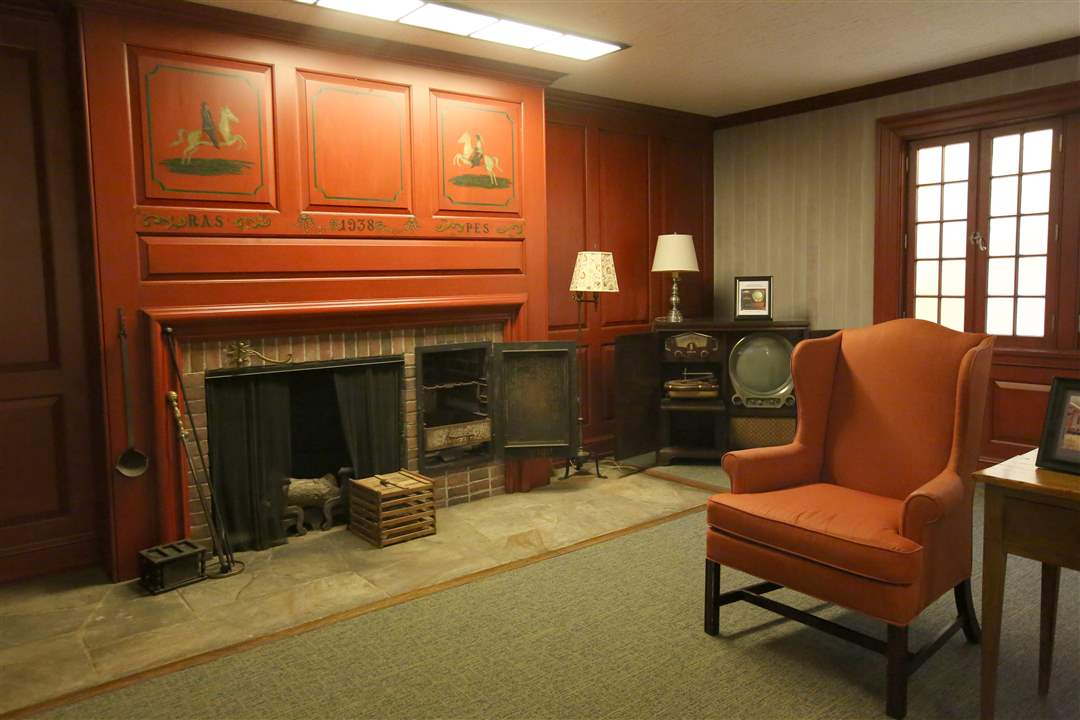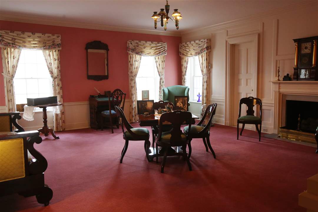 One of the upstairs bedrooms has been staged as a sitting room inside the historic Manor House at Wildwood Preserve.