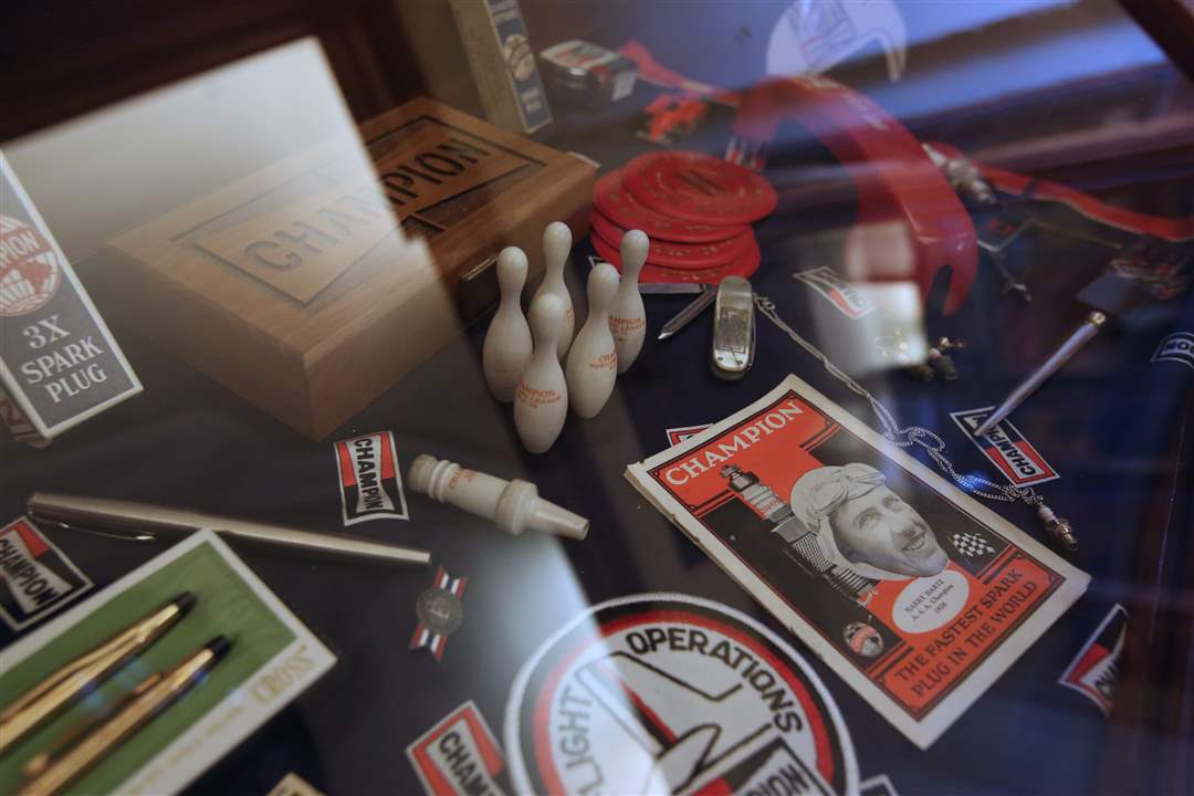 Memorabilia from Champion Spark Plug Company is on display to visitors of Manor House.