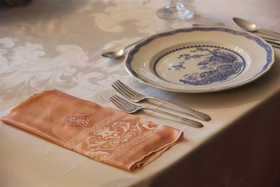 Napkins original to the Stranahan family are on display at Manor House at Wildwood Preserve.