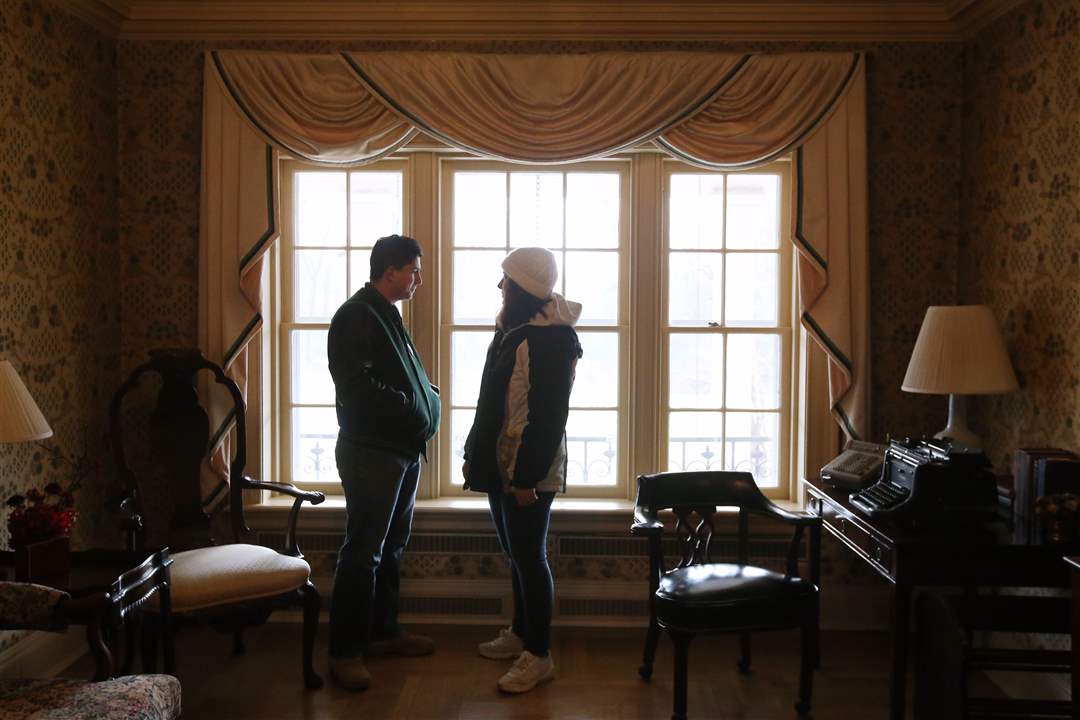Visitors Marcus Santoni of Macedonia, Ohio, left, and Khala Gilliam of South Toledo tour the Manor House at Wildwood Preserve. Located at 5100 W. Central Ave. in Sylvania Township, the park is offering free tours on Sundays, noon to 5 p.m. January through March.